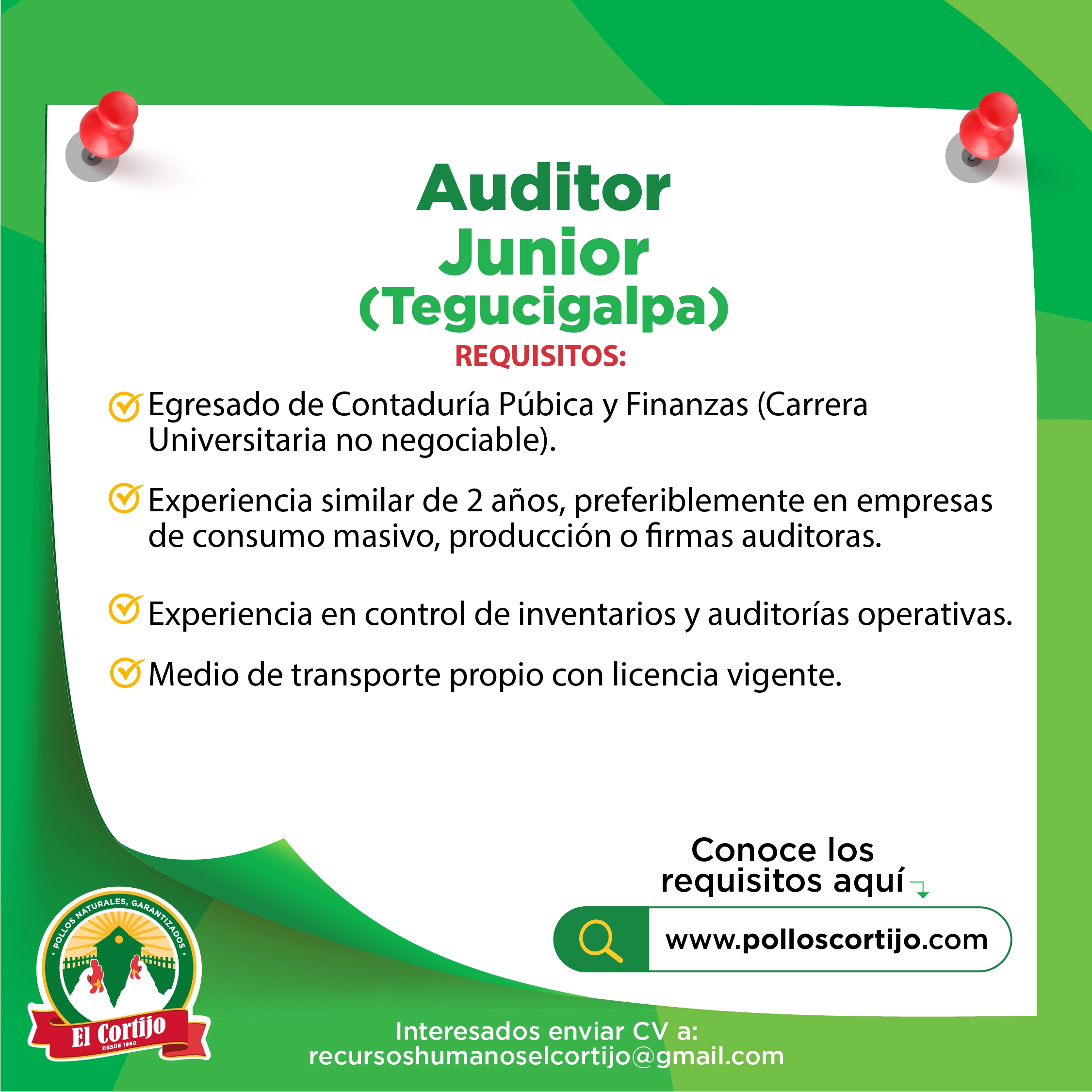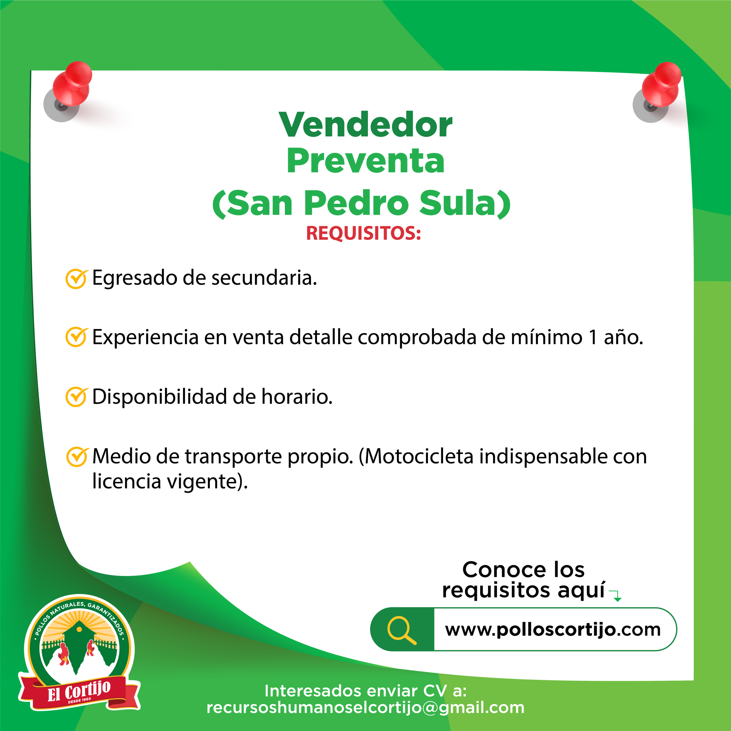 Interesados favor enviar hoja de vida a: recursoshumanoselcortijo@gmail.com